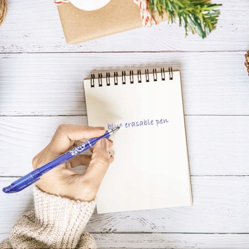Niebieski długopis wymazywalny idealnie sprawdzi się w szkole, ponieważ gumką, którą jest zakończony, można wymazać każdy popełniony podczas pisania błąd.