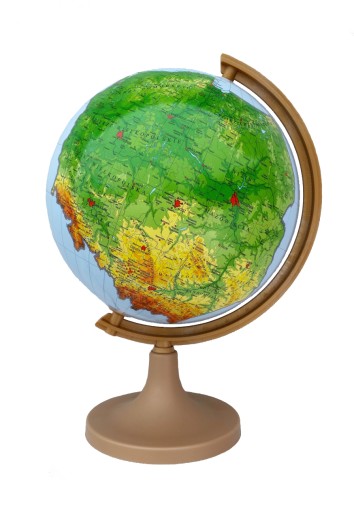 Globus 320 mm mapa Polski administracyjno-fizyczna. Po jednej stronie kuli mapa fizyczna Polski, po drugiej mapa z podziałem administracyjnym.