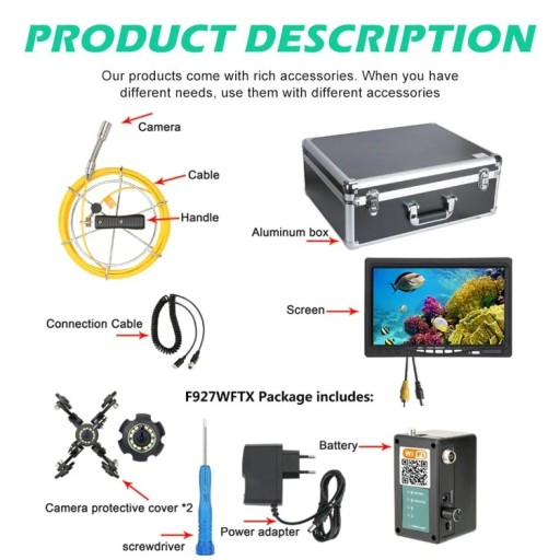 Bezprzewodowy zestaw DVR 7" WiFi z kamerą IP68 22MM HD 1000TVL Nadajnik 30M 512 Hz Wbudowana kamera do zewnętrznej rury spustowej