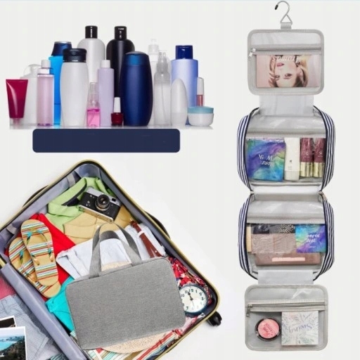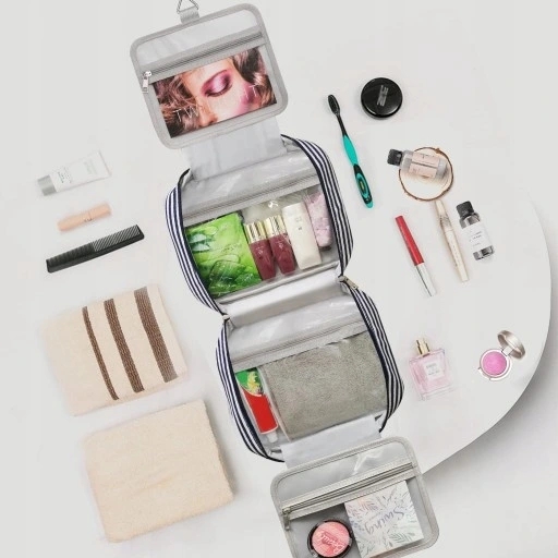 - Kosmetyczka wisząca, miękkie wyściełane paski, bezpieczny podwójny zamek.