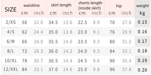 DAMSKA SPÓDNICA SPORTOWA I SZORTY W JEDNYM XXL Waga produktu z opakowaniem jednostkowym 0.12 kg