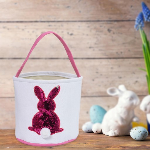 : Torba z koszykiem z zajączkiem wielkanocnym do polowania na jajka, dzieci i dorośli ją uwielbiają Niepowtarzalny wzór królika z cekinami, tworzący świąteczny Idealny do przechowywania cukierków, jajek, czekolady, smakołyków lub innych drobnych upominków kolory sprawiają, że jest jaśniejszy i oznacza nadejście wiosny Świetne dodatki, które rozjaśnią Twój dom na święta wielkanocne!
