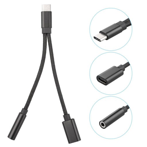 Typ C do 3,5 mm i ładowarka 2 w 1 Słuchawki Audio Jack Adapter kabla USB C
