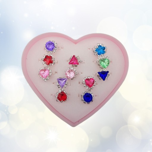 ⭐ ZESTAW PIERŚCIENI DLA DZIECI Z PUDEŁKIEM W KSZTAŁCIE SERCA