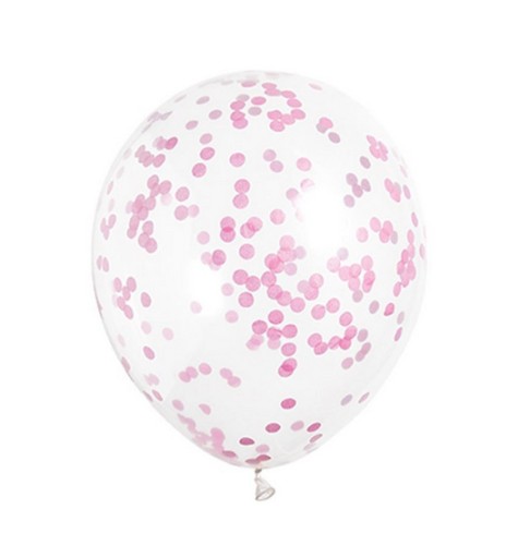 Idealnym uzupełnieniem różowych i szarych balonów są przezroczyste balony z konfetti.