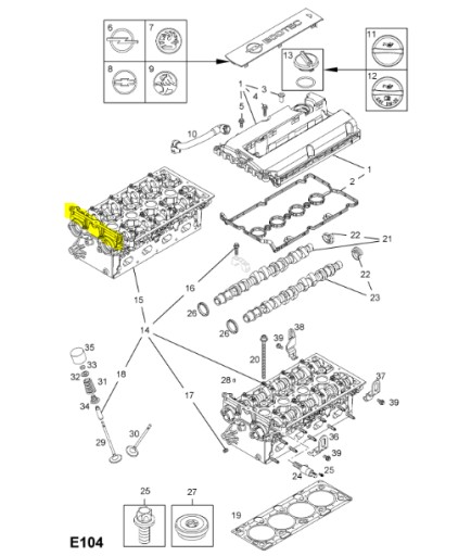Sprzedam panewkę wałków rozrządu, mostek wałka (element zaznaczony na żółto na schemacie) Stan idealny, wszystkie gwinty są całe i bez uszkodzeń. Mostek pasuje do samochodów marki Opel z silnikami o oznaczeniu: Z18XER, A18XER, Z16XER, A16XER.