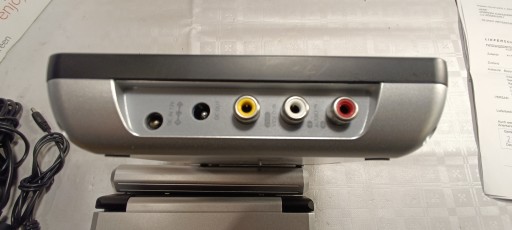 Stan techniczny z powodu braku zasilacza nie sprawdzany. Odtwarzacz przesyła sygnał AV do drugiego monitora bezprzewodowo przez transmiter wireless FM.