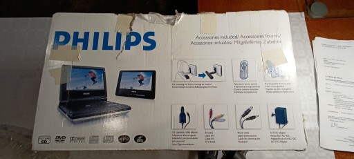 Na sprzedaż to co na zdjęciach czyli odtwarzacz DVD/ CD przenośny samochodowy "Philips Pet 707 "