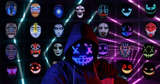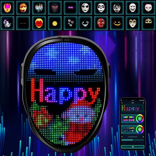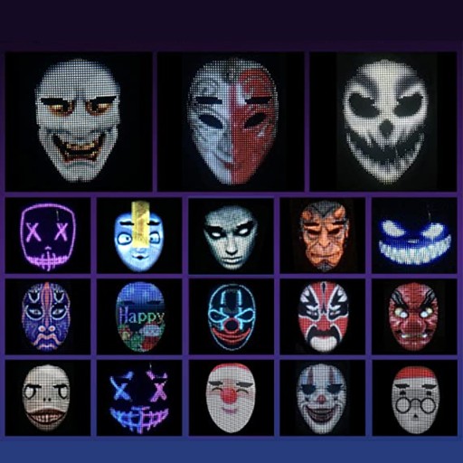 СМЕННАЯ МАСКА ДЛЯ ХЭЛЛОУИНА СВЕТЯЩАЯСЯ СВЕТОДИОДНАЯ ПРОГРАММИРУЕМАЯ УПРАВЛЕНИЕ ЖЕСТАМИ ПРИЛОЖЕНИЯ