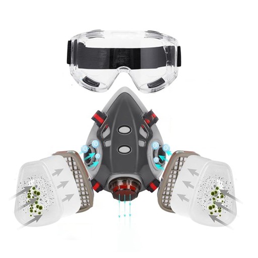 🤿Półmaska oddechowa wielokrotnego użytku z goglami ochronnymi do szlifowania, polerowania, obróbki Malowanie