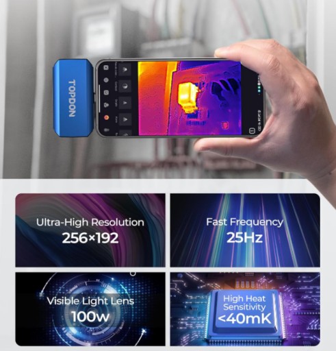 Dzięki ultra wysokiej rozdzielczości IR 256x192, skaner termiczny TOPDON TC001 wyświetla obraz termiczny celu w wysokiej rozdzielczości.