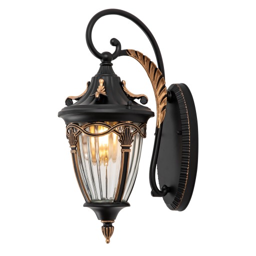 Jeśli chcesz, aby Twój ogród był wyposażony w klasycznego uroku, to ta lampa ścienna jest dostępna. Ma stożkowy wygląd z przezroczystym szkłem i jest ozdobiony wzorami liści malowanymi na złoto. Wykonania z aluminium premium i szkła z delikatnego zastosowania natrysku, nie jest łatwe do blaknięcia lub podatny na rdzę. Możesz sprawdzić na werandzie, patio, itp., aby zapewnić swój własny gust