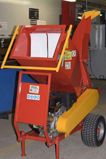 Kosz wsadowy materiału posiada dźwignię bezpieczeństwa po naciśnięciu której następuje natychmiastowe wyłączenie silnika spalinowego rębaka.