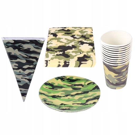 Камуфляжные бумажные тарелки, салфетки треугольники, 41 шт.