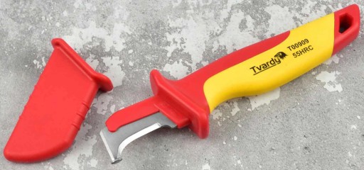 Nóż izolowany VDE 1000V przeznaczony do ściągania izolacji. Ergonomiczna, wielokomponentowa rękojeść zapewnia skuteczną izolacje do 1000V. Doskonale sprawdzą się podczas wykonywania wszelkiego rodzaju prac przy instalacjach niskonapięciowych. Sierpowate ostrze wykonane ze stali nierdzewnej 3Cr13 poddanej odpowiedniej obróbce cieplnej w celu uzyskania optymalnej twardości na poziomie 55 HRC. Ostrze zakończone stopką ślizgową ułatwiającą ściąganie izolacji.