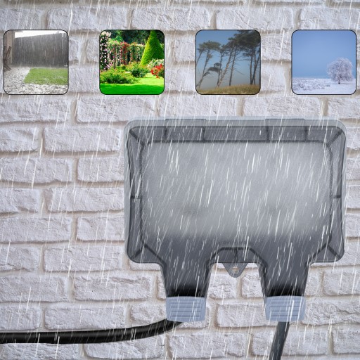 Gniazdko jest wykonane z materiałów odporowych na warunki atmosferyczne, takich jak UV, deszcz czy kurz.