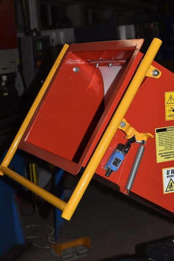 Kosz wsadowy materiału posiada dźwignię bezpieczeństwa po naciśnięciu której następuje natychmiastowe wyłączenie silnika spalinowego rębaka.