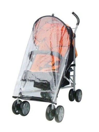 Folia przeciwdeszczowa zabezpiecza wózek i dziecko przed niepogodą.