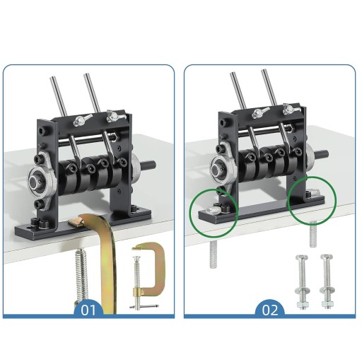 - ✅ 【Metody instalacji】: Istnieją 2 metody instalacji: możesz wywiercić małe otwory na stole warsztatowym, przymocować maszynę za pomocą śrub (w zestawie) lub zacisnąć maszynę za pomocą zacisków G (w zestawie).