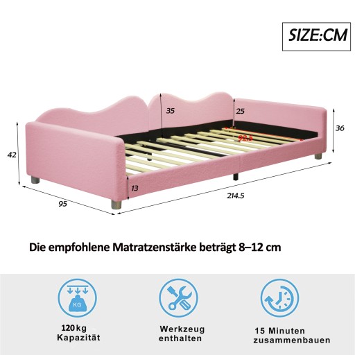To łóżko tapicerowane ma stabilną konstrukcję ramy wykonaną z 12 drewnianych listew, dzięki czemu jest niezwykle stabilne i trwałe. Nośność wynosi 120 kg. Podstawa z drewnianych listew jest bardziej przewiewna, zapewniając dziecku bardziej komfortowy sen.