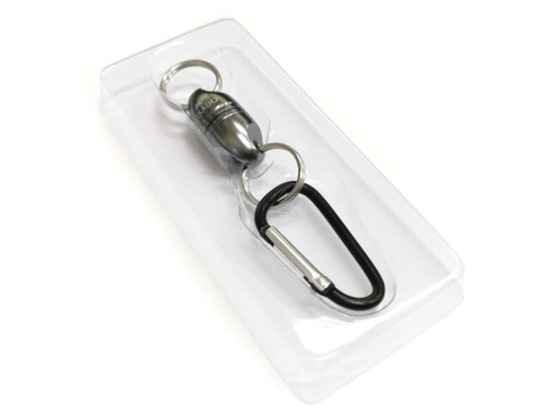 Precyzyjnie wykonwny, uniwersalny magnetyczny klips z szybkozłączką umożliwiającę podczepienie podbieraka, szczypiec czy innych akcesoriów. Wysokiej klasy magnes potrafi utrzymać mały podbierak spinningowy, a szybkie szarpnięcie zwalnia połączenie. Specyfikacja