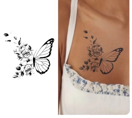 TYMCZASOWY TATUAŻ PÓŁTRWAŁY Z MOTYLEM KWIATOWYM NOWA TECHNOLOGIA