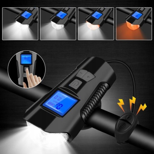 Lampka ROWEROWA Na Kierownicę LED LICZNIK PRZÓD + TYŁ Zestaw Klakson Mocna