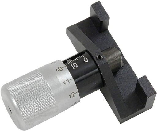 Przyrząd do kontrolowania naciągu paska rozrządu Opis przyrządu: Przyrząd służy do szybkiej kontroli naciągu paska rozrządu. Jest to uniwersalne urządzenie pozwalające na kontrolę naciągu paska rozrządu. Pozwala na pomiary pasków o rożnej szerokości i wysokości wszędzie tam gdzie podane jest ugięcie paska [mm] pod zadanym obciążeniem [N] . Informacje takie udzielane są przez producentów pojazdów lub są dostępne w fachowej literaturze [np. AUTODATA]. Przyrząd posiada dwie skale, większa skala przyrządu odpowiada większej skali na pokrętle, i odpowiednio mniejsza skala na przyrządzie odpowiada mniejszej skali na pokrętle. Obrotowe pokrętło służy do nastawienia zadanego obciążenia, skala na przyrządzie odpowiada jednostkom, a skala na pokrętle dziesiętnym częściom. Końcówka pomiarowa. Skala ugięcia paska - aktualne ugięcie wskazuje ruchomy trzpień.