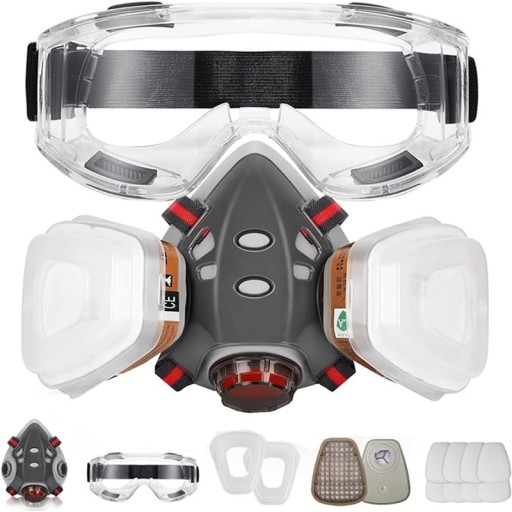 ✔️Humanizowany projekt: maska gazowa z filtrem, elastycznym regulowanym pałąkiem i osłoną twarzy pasują do większości rozmiarów głowy. Nawet jeśli nosisz okulary, gogle zapewniają niezawodną ochronę oczu. Aby pracować wygodniej i bezpieczniej, należy nosić maskę przeciwpyłową.