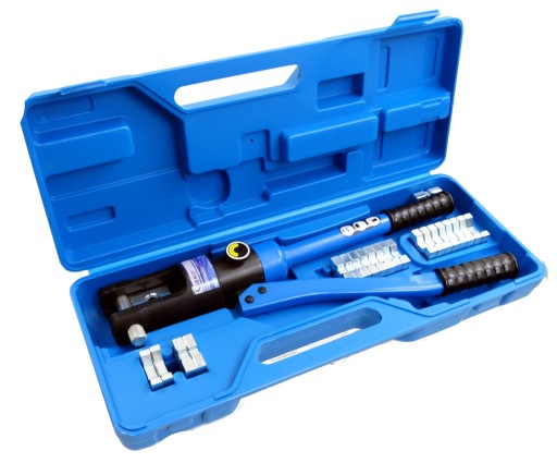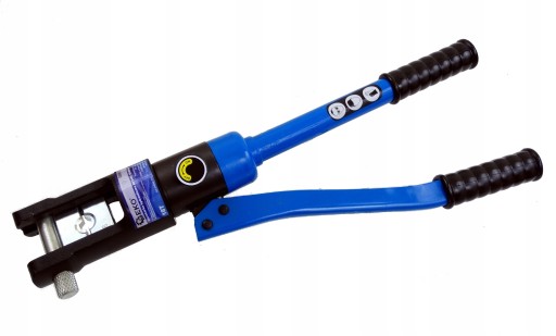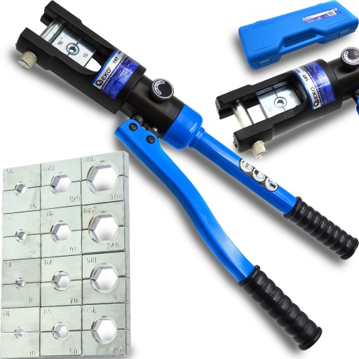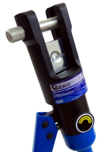 Hydrauliczna praska 18T do zaciskania końcówek kabli + zestaw matryc 10-300mm 2 Wysokiej jakości praska hydrauliczna do zaciskania końcówek kabli. Praska renomowanej marki GEKO generuje nacisk o sile 18T, dzięki temu zaciskanie nawet dużych końcówek nie wymaga użycia dużej siły. Wyposażona w zestaw 12 matryc w rozmiarach 10-300mm 2 . Cechy produktu: maksymalna siła zagniatania 18 ton obrotowa głowica bezpieczne i wygodne zagniatanie zestaw 12 matryc w rozmiarach 10-300 mm 2 ; wykonane z hartowanej stali z chromowanym wykończeniem skok tłoka 18 mm