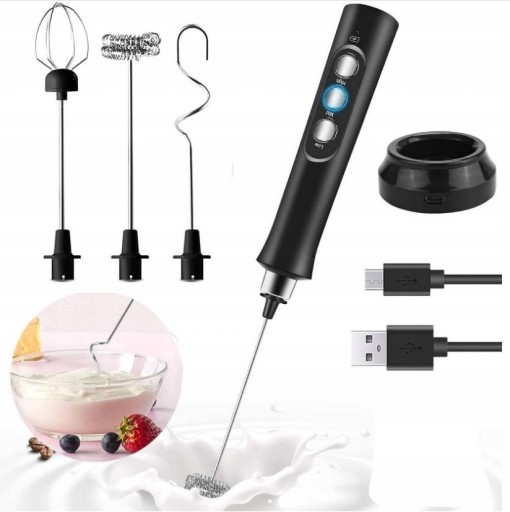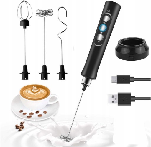 ☕️【Szerokie zastosowanie】: ten elektryczny czajnik posiada 3 różne głowice do różnych funkcji. Głowica z podwójną sprężyną jest używana do przygotowywania kawy, koktajli, śmietany, czekolady itd., a głowica rakiety jest używana do ubijania jaj.
