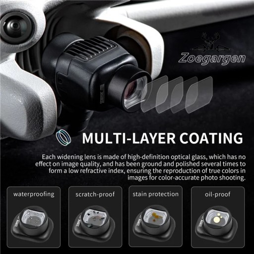 Wielowarstwowa powłoka jest wodoodporna, odporna na zarysowania, pyłoszczelna, olejoodporna i może chronić obiektyw drona przed wszechstronnymi uszkodzeniami