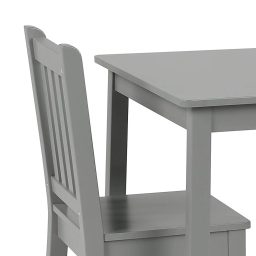 Nowoczesny design: Elegancki szary kolor pasuje do każdego pokoju dziecięcego i łatwo komponuje się z innymi wnętrzami. Zestaw zawiera kwadratowy szary stół i dwa szare krzesła o nowoczesnym i uniwersalnym designie, które z pewnością uzupełnią Twój istniejący wystrój.