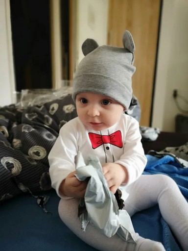 Новая хлопковая детская шапка и шарф, комплект детских шапок с милыми ушками, высокие шапочки