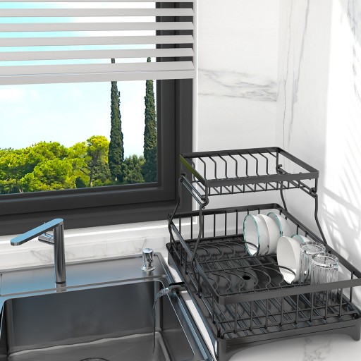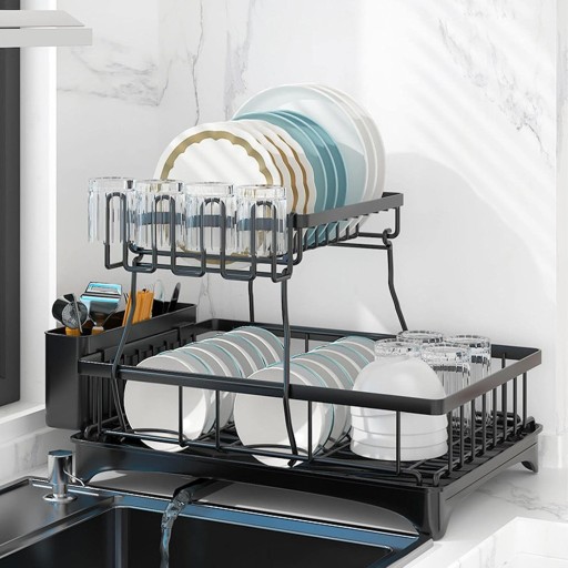 Nasz stojak do suszenia zastawy stołowej ma dwuwarstwową, zdejmowaną konstrukcję, która może powiększyć przestrzeń na blacie, nie zajmując zbyt dużo miejsca w kuchni. Pomieści więcej naczyń niż zwykłe stojaki na naczynia i jest bardzo praktyczny. Będzie to świetny organizer do kuchni, dzięki któremu wszystko będzie uporządkowane.