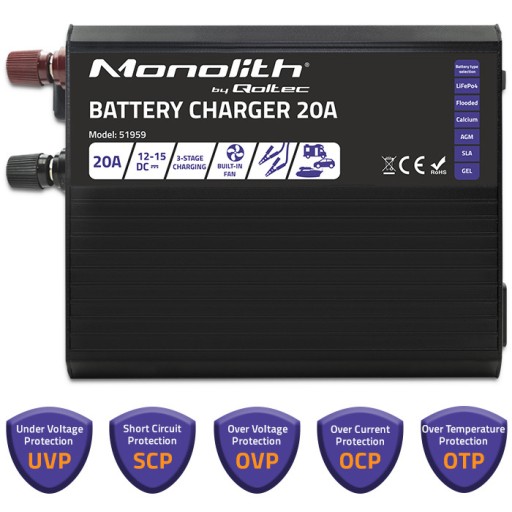 Nasza ładowarka Monolith zaprojektowana z myślą o bezproblemowej pracy z szeroką gamą różnego rodzaju akumulatorów, w tym AGM, GEL, wapniowych, SLA i LiFePO4 zapewniając im stabilne i bezpieczne źródło energii oraz gwarancję zachowania akumulatora w dobrej kondycji przez cały okres eksploatacji. Idealna w zastosowaniu do pojazdów z napędem na 4 koła, przyczep kempingowych i kamperów, ciężarówek, innych pojazdów użytkowych, ale również będzie dobrym wyborem dla właścicieli łodzi i jachtów.