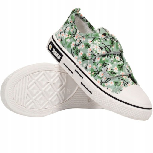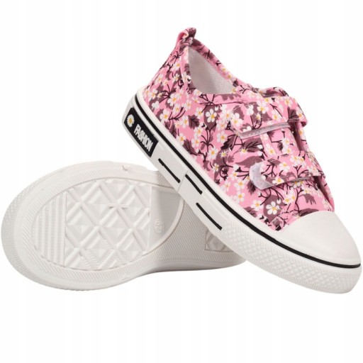 Dziewczęce buty sportowe zapinane na rzep w klasycznym fasonie. Idealnie sprawdzą się jako obuwie szkolne czy codzienne- posiadają białe podeszwy oraz są łatwe w zakładaniu. Ponadto są lekkie, miękkie oraz zapewniają wygodę i komfort użytkowania.