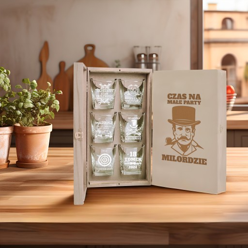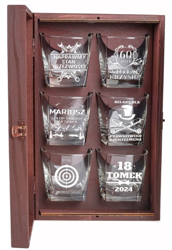 ⭐️ZESTAW 6 GRAWEROWANYCH SZKLANEK Z PIĘKNYM GRAWEROWANYM PUDEŁKIEM NA PREZENT NA URODZINY DLA KAŻDEGO!⭐️
