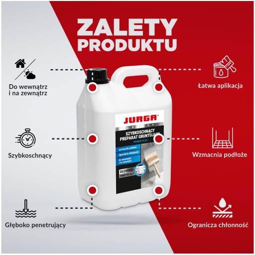 Głęboko wnika w podłoże wzmacnia je i w efekcie poprawia przyczepność warstwy zewnętrznej. Dla mniej wymagających powierzchni można go rozrobić z czystą wodą w stosunku 1:1, 1:2. Możne być stosowany wewnątrz i na zewnątrz pomieszczeń.