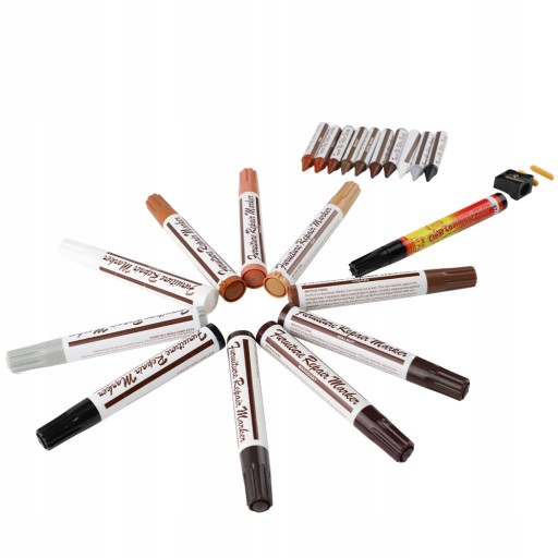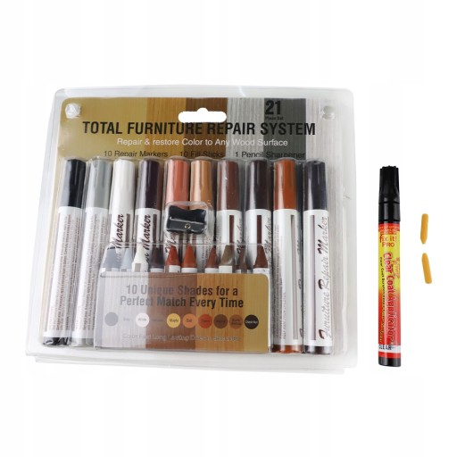 Drobne uszkodzenia, rysy powierzchni teraz łatwo naprawisz przy pomocą naszego zestawu do naprawy mebli. Naprawa następuje poprzez wypełnienie głębszego ubytku woskiem, oraz dorysowanie struktury drewna odpowiednim kolorem markera. Zestaw umożliwia samodzielną szybką naprawę uszkodzeń paneli, mebli, drzwi i innych produktów z drewna i materiałów drewnopochodnych. Po zastosowaniu zestawu naprawczego nie musisz czekać "wieków" aż wszystko wyschnie. Markery są szybkoschnące. To jednak nie wszystko, powłoka w miejscu naprawy jest odporna na zarysowania. Podkład w postaci półtwardej woskowej kredki aplikuje się bezproblemowo, całości dopełnia marker w tym samym kolorze zawiera olejowy tusz odporny na zmywanie co gwarantuje długotrwały efekt. Bogaty zestaw kolorów zawartych w zestawie aż 10 różnych: dąb, wiśnia, mahoń, klon, orzech, czarny sprawia, że możesz go używać do mebli w jasnych, ciemnych oraz średnich kolorach.