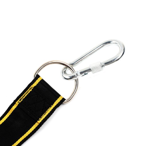 2️⃣Wciśnij jeden koniec pierścienia D w drugi pierścień końcowy, pociągnij w dół i napnij pasek;