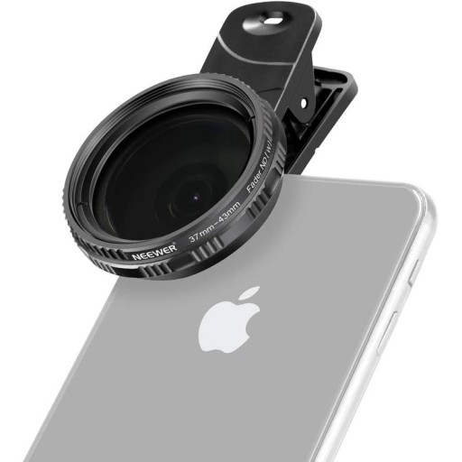 Zestaw metalowych klipsów NEEWER do mocowania filtra CPL do telefonu z filtrem o zmiennej gęstości neutralnej ND-2–400, gniazdo i filtr 37 mm, kompatybilny z iPhone X/8/8Plus