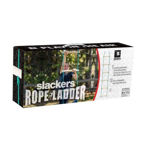 Solidna i wszechstronna drabinka wspinaczkowa SLACKERS Ninja 2,5 m wykonana z materiału odpornego na warunki atmosferyczne. Lina syntetyczna z okrągłymi, solidnymi drewnianymi poprzeczkami. Drabinę można łatwo przymocować za pomocą dwóch dołączonych karabińczyków delta, nawet bez użycia narzędzi. Idealny dodatek do huśtawek ogrodowych Ninjaline, dziecięcych domków na drzewie.