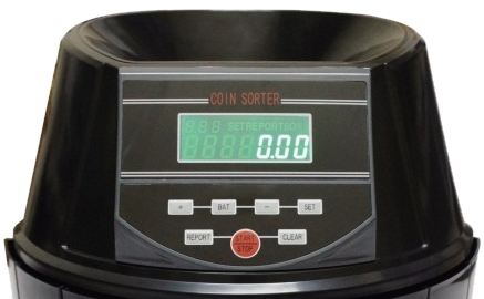 Duży i czytelny wyświetlacz pokazuje informacje o całkowitej wartości (łącznej sumie) wszystkich przelicznych monet, a także (u dołu wyświetlacza) o wartości przeliczonych monet z każdego nominału – w czasie rzeczywistym, bez konieczności wciskania przycisku „raport”.