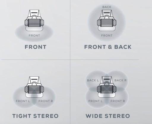 Charakterystyka: Przód, Przód-tył, Stereo przód, Stereo Przód-tył