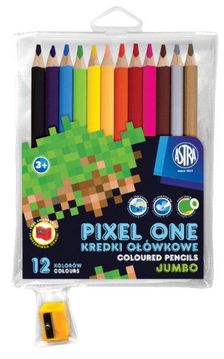 - Kredki ołówkowe jumbo okrągłe Pixel One 12 kolorów + temperówka - Grube kredki dla łatwiejszego uchwytu, idealne dla młodszych dzieci, z temperówką w zestawie.