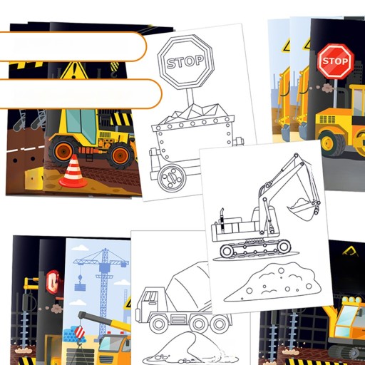 12 SZTUK KOLOROWANIE SAMOCHODY BUDOWLANE KSIĄŻKI MALARSTWO ŚMIESZNA KSIĄŻKA Z GRAFFITI