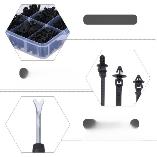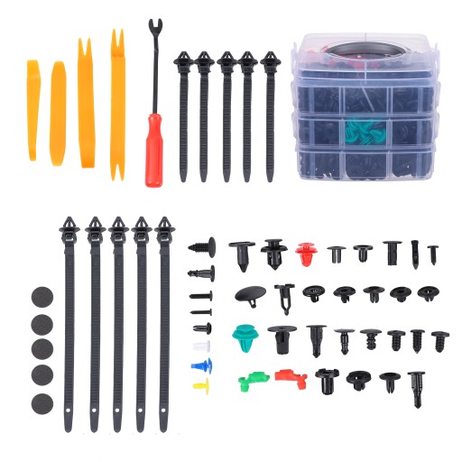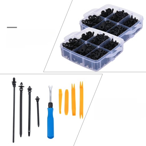 ✅680 x zaciski mocujące do samochodu 5 x narzędzia 10 x opaski kablowe 28 x gąbki