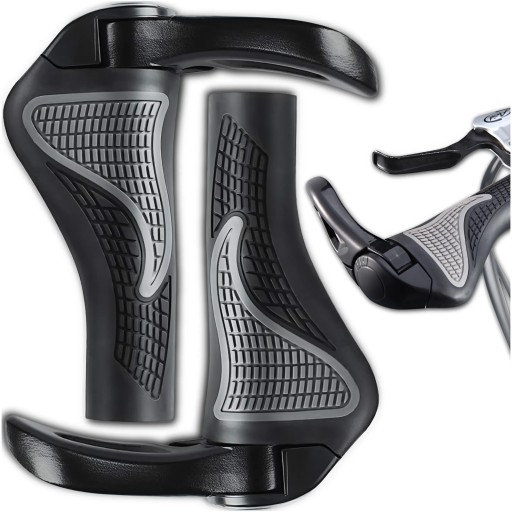 CHWYTY ROWEROWE ERGONOMICZNE GRIPY ROGI CZARNE ANTYPOŚLIZGOWE RĄCZKI