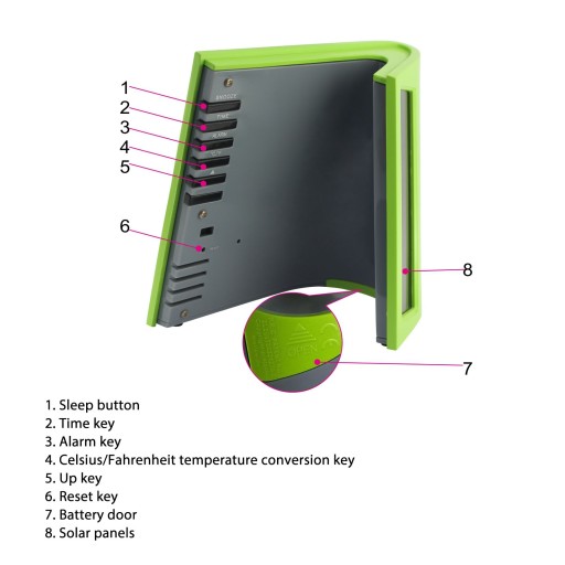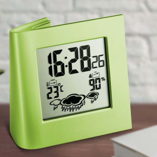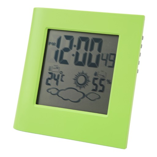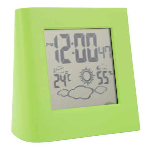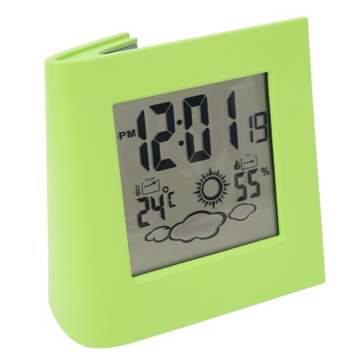 Bateria słoneczna Budzik z podwójną energią Prognoza pogody Temperatura Wilgotność Budzik Zielony